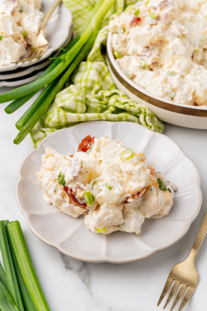 Keep things traditional, or customize this potato salad recipe to make it your version of the ultimate loaded baked potato salad!